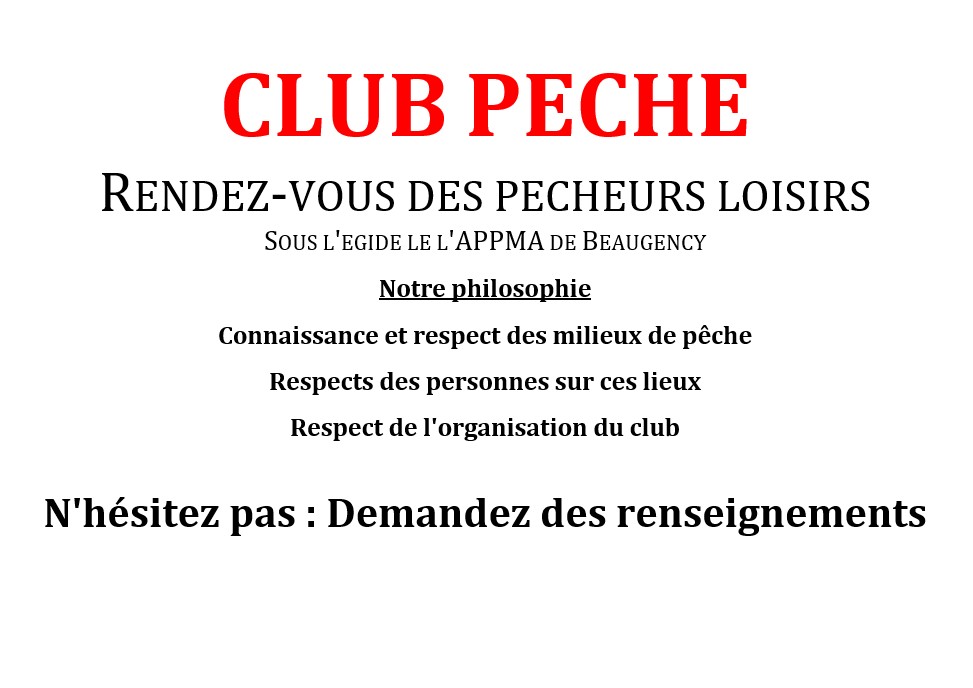 Le Club Pêche est ouvert pour cette nouvelle année.