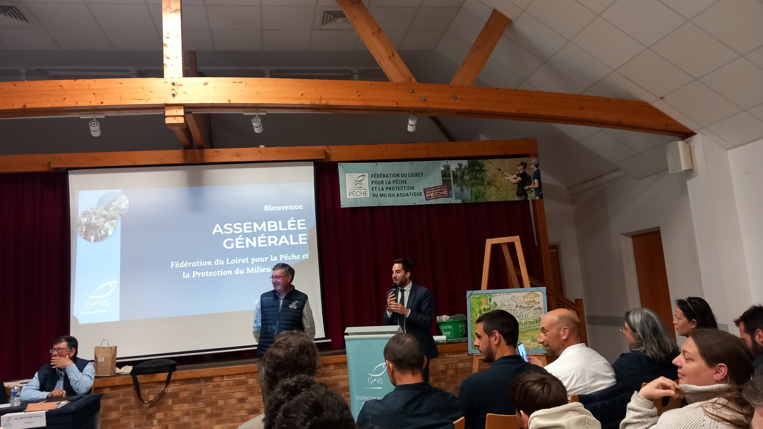 L’assemblée générale s’est tenue en présence des représentants des AAPPMA, des élus, des partenaires institutionnels, Francois Bonneau Président de la région centre val de Loire, la députée Marie-Philippe Lubet, aux côtés de ses collègues parlementaires Pauline Martin et Thomas Ménagé, ainsi que Davy Masson, directeur général de la Chambre d’agriculture du Loiret