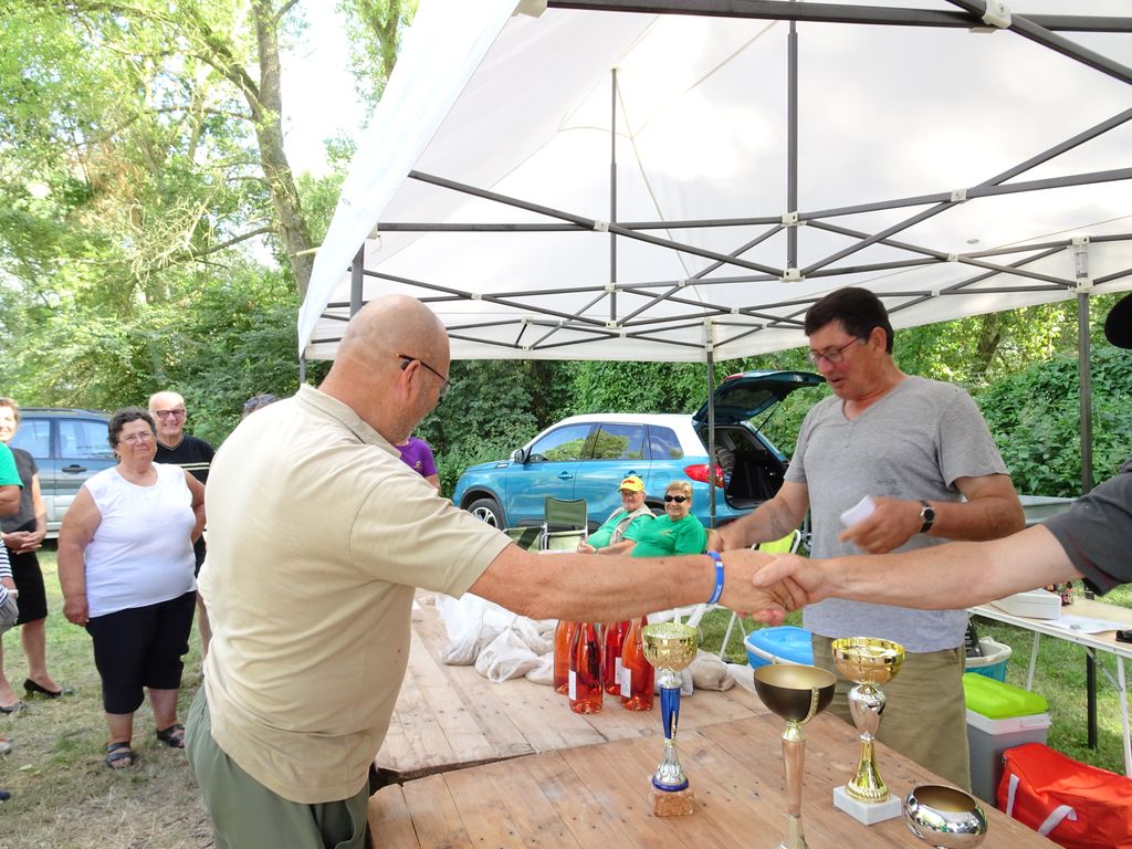 Le gagnant Mr Sauveur Bellavia à pris une quinzaine de poissons en à peine 1 heure car la pluie nous a stoppé dans notre élan. Nous avons ensuite pris le verre de l’amitié en proclamant les résultats et en mangeant une part de gâteau fait maison très bon.