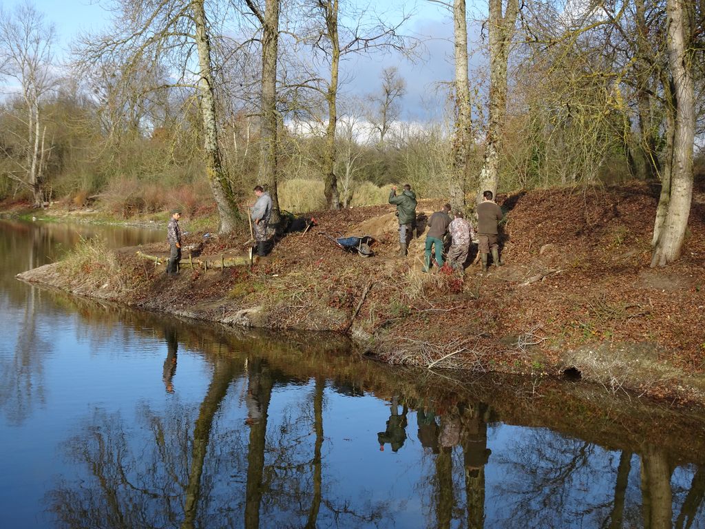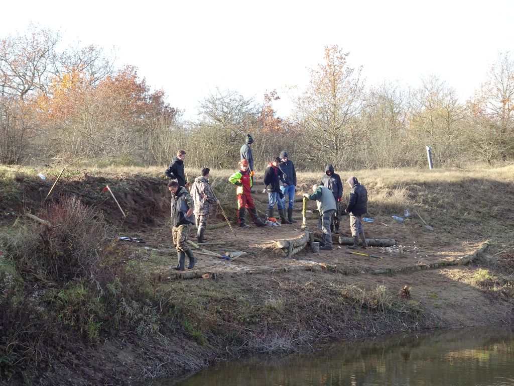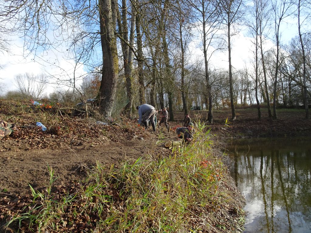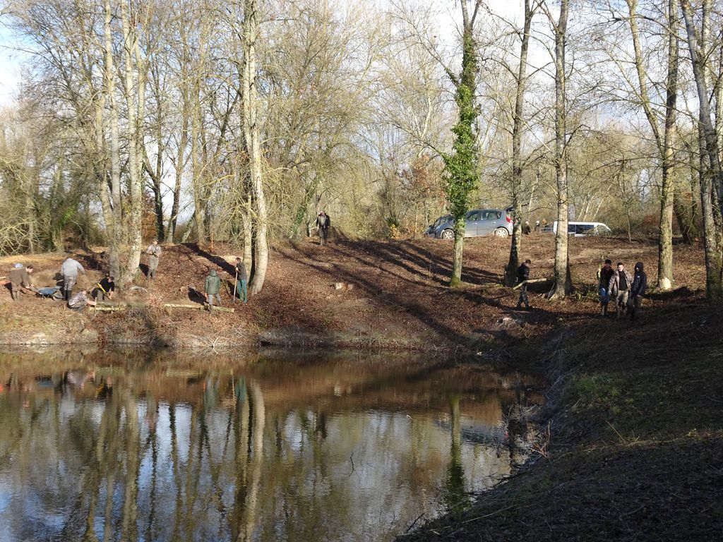 le 28 et 29 novembre nous avons réalisé un bon nettoyage du petit étang des Accruaux .Cela c’est fait grâce à un chantier effectué par la MFR de Chaingy (organisme de formations par alternance et apprentissage ).Toute l’équipe de jeunes de la MFR à effectué un important travail de débroussaillage et un aménagement des berges de l’étang .Nous avons été aussi aidé par la fédération de pêche du Loiret pour le broyage des végétaux .Des volontaires de L’AAPPMA ont aussi apportés leur contributions pour ce chantier.Tout cela c’est passé dans une très bonne ambiance.