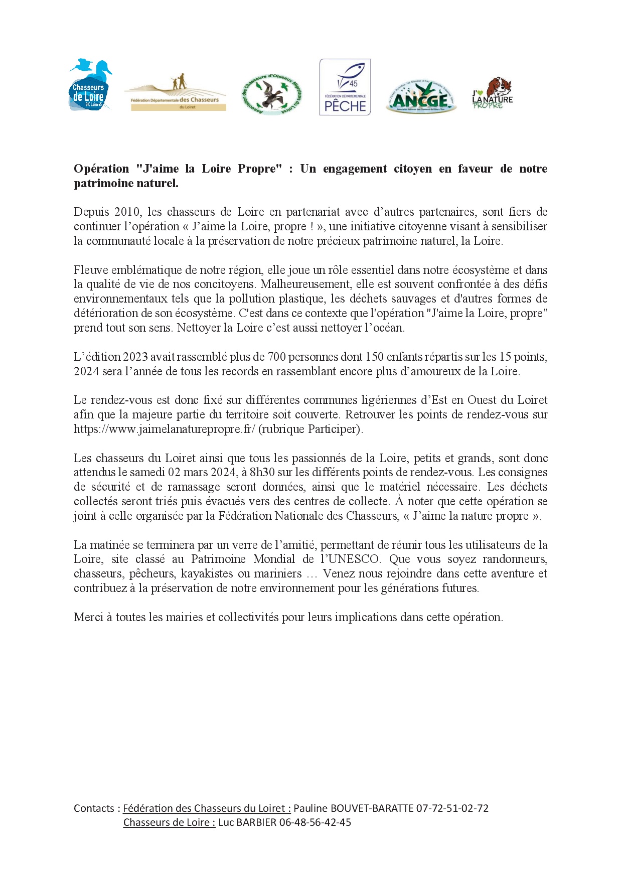 M Lochet nous fait savoir qu’il serait bien de prévoir un nettoyage sur le bord de la ballastière des Accruaux. Celui-ci sera programmé avant les sorties des scolaires.