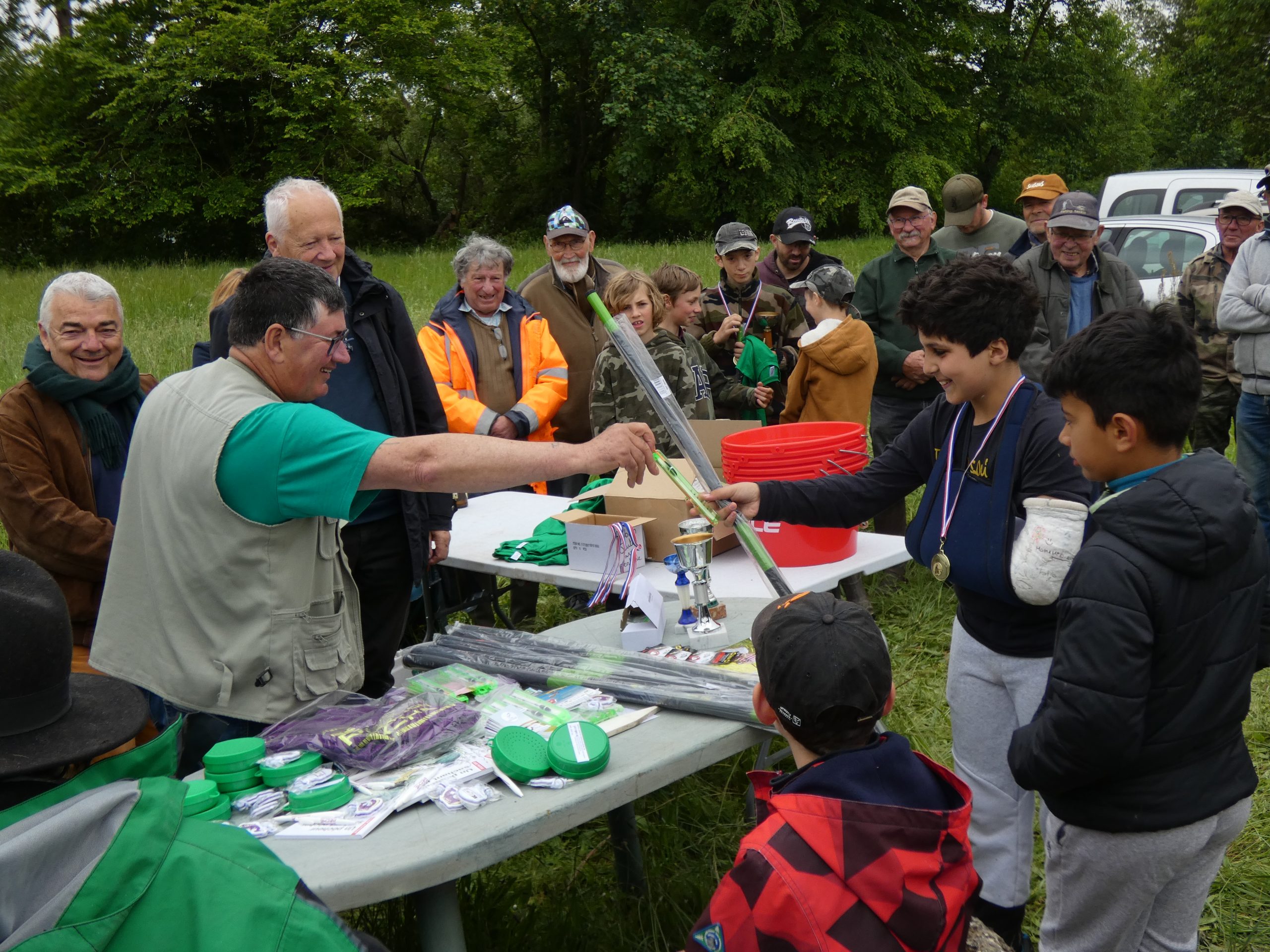 Devant l’affluence nous avons dû placer des pêcheurs dans la 2e ballastière des Accruaux !!!! Un Grand Bravo au jeune Loïc qui gagne le concours avec une brême de plus de 2kg !!!!! Bravo aux 16 enfants participants qui sont tous repartie avec des lots offerts par la Fédération de pêche du Loiret.