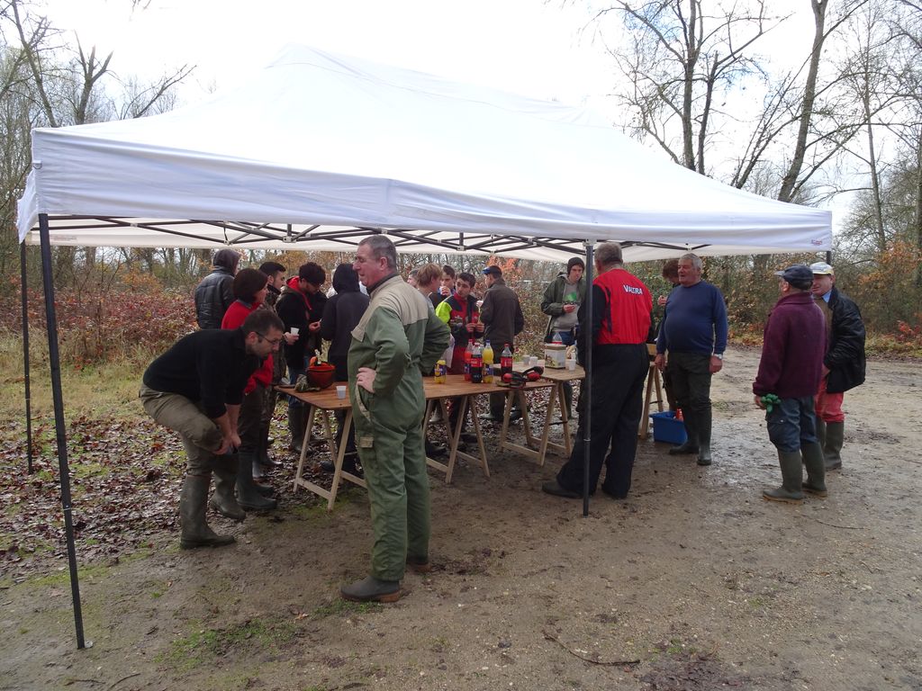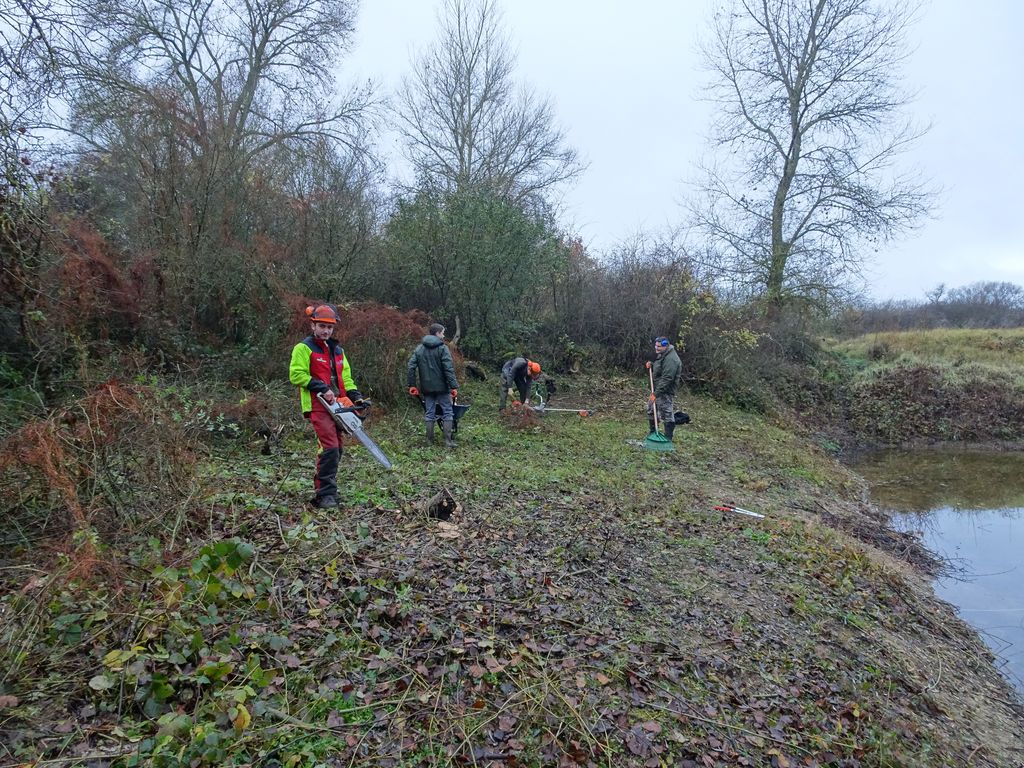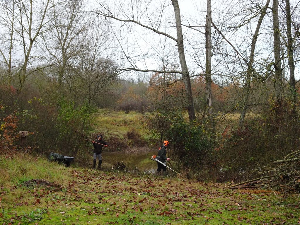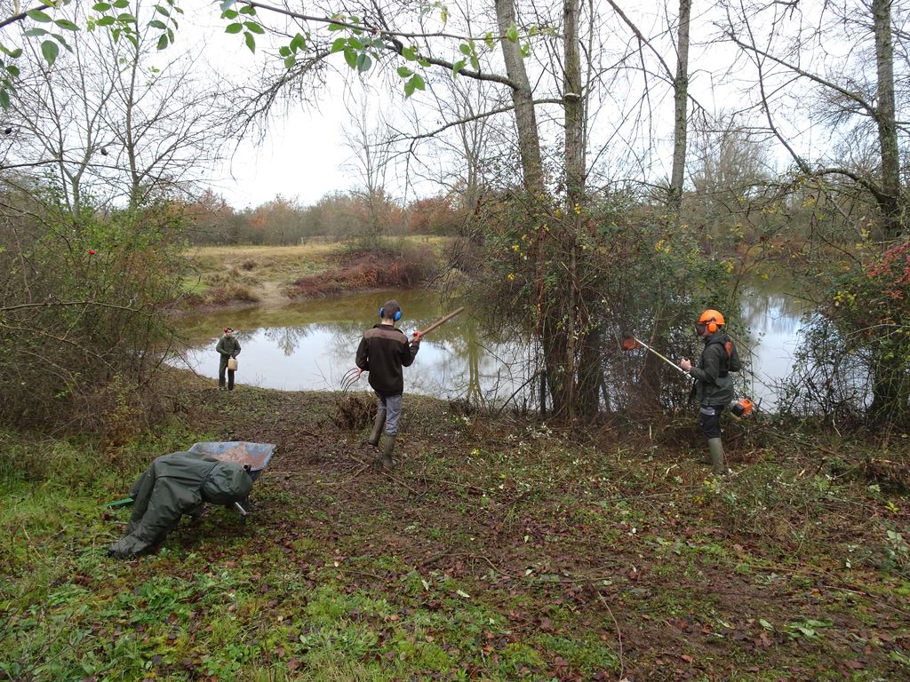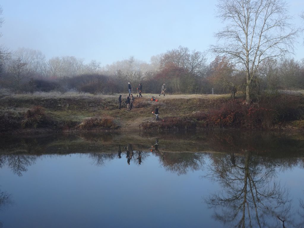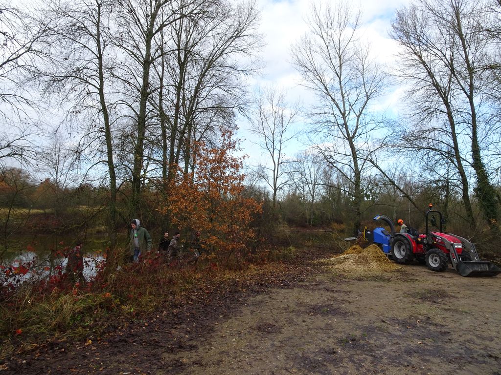 le 28 et 29 novembre nous avons réalisé un bon nettoyage du petit étang des Accruaux .Cela c’est fait grâce à un chantier effectué par la MFR de Chaingy (organisme de formations par alternance et apprentissage ).Toute l’équipe de jeunes de la MFR à effectué un important travail de débroussaillage et un aménagement des berges de l’étang .Nous avons été aussi aidé par la fédération de pêche du Loiret pour le broyage des végétaux .Des volontaires de L’AAPPMA ont aussi apportés leur contributions pour ce chantier.Tout cela c’est passé dans une très bonne ambiance.